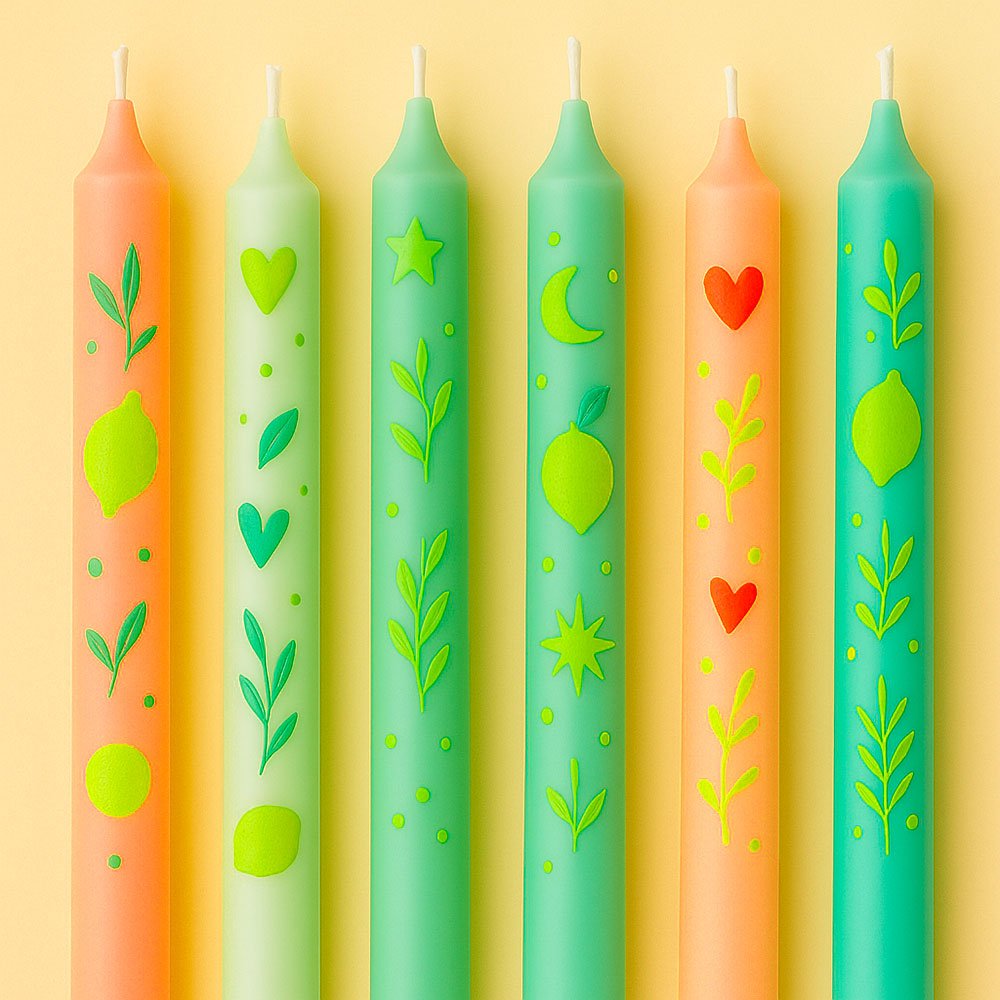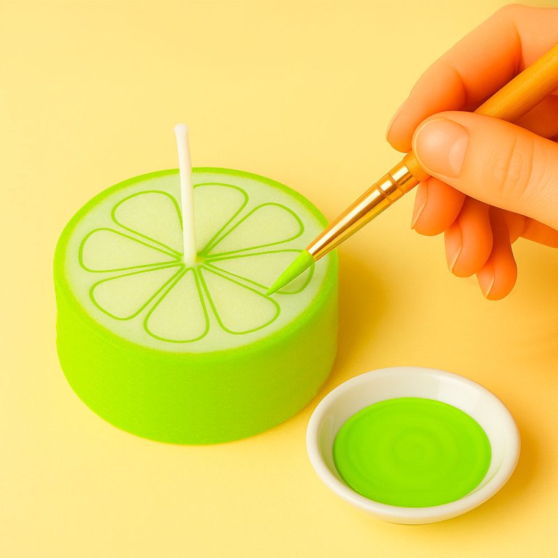 Voici étape par étape comment utiliser la peinture pour bougies. Elle est très simple à appliquer ! Elle sèche rapidement et adhère facilement à toute surface de cire. Vous pouvez l’appliquer directement avec un pinceau pour les petits détails ou utiliser la technique d’immersion pour recouvrir toute la bougie. Vous pouvez également utiliser un pochoir pour faciliter le dessin ou appliquer la couleur avec une éponge, technique appelée stencil.