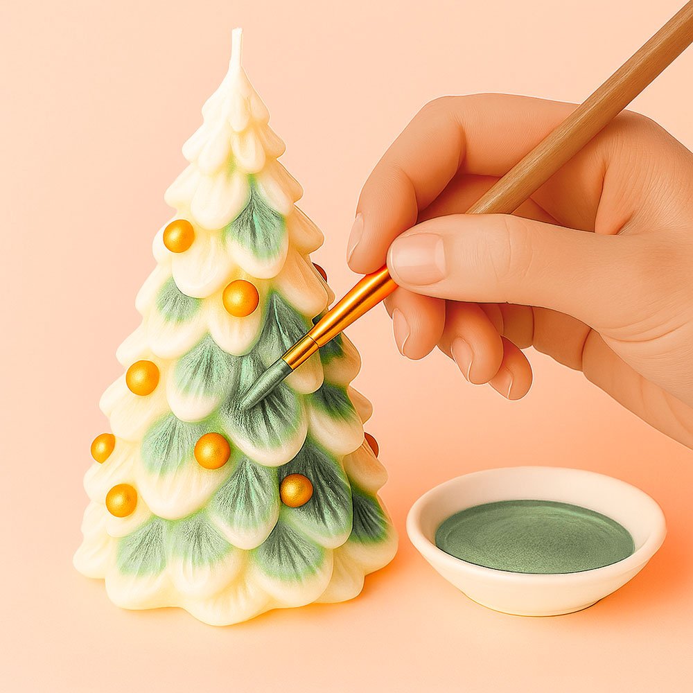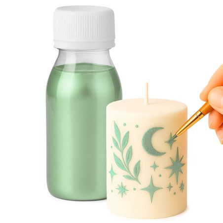La peinture pour bougies que vous pouvez acheter dans notre boutique en ligne est spécialement conçue pour peindre les surfaces en cire. Elle se présente sous forme liquide et est disponible dans une large gamme de couleurs : métallisées, nacrées, neutres ou fluo. En particulier, le vert sauge métallisé se distingue par sa finition fraîche, lumineuse et élégante, parfaite pour apporter une touche contemporaine à vos créations.
