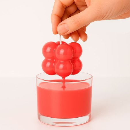 Le vernis corail néon pour bougies vous permettra de donner à vos bougies une belle couleur et un effet néon. Ce vernis est d'application facile et à séchage rapide et avec lui, vous réussirez à changer l'aspect de vos bougies de manière rapide et simple. Notre recommandation est d'appliquer le vernis par la technique d'immersion, comme détaillé ci-dessous. Lors de l'utilisation du vernis pour bougies, il est conseillé que la bougie de base soit de couleurs claires et que sa surface soit bien propre. Si elles sont foncées, il faudra effectuer plusieurs bains d'immersion pour un rendu parfait. Il s'agit d'un vernis de qualité qui n'affectera pas la combustion de la bougie. De plus, il ne produit pas d'odeur pendant la combustion. Bien mélanger avant usage, en utilisant une spatule ou un bâton (ne pas agiter l'emballage).