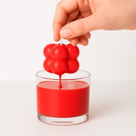 Le vernis rouge néon pour bougies vous permettra de donner à vos bougies une belle couleur et un effet néon. Ce vernis est d'application facile et à séchage rapide et avec lui, vous réussirez à changer l'aspect de vos bougies de manière rapide et simple. Notre recommandation est d'appliquer le vernis par la technique d'immersion, comme détaillé ci-dessous. Lors de l'utilisation du vernis pour bougies, il est conseillé que la bougie de base soit de couleurs claires et que sa surface soit bien propre. Si elles sont foncées, il faudra effectuer plusieurs bains d'immersion pour un rendu parfait. Il s'agit d'un vernis de qualité qui n'affectera pas la combustion de la bougie. De plus, il ne produit pas d'odeur pendant la combustion. Bien mélanger avant usage, en utilisant une spatule ou un bâton (ne pas agiter l'emballage).