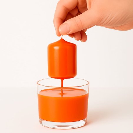 - Tenir la bougie par la mèche et l’immerger quelques instants dans le vernis.