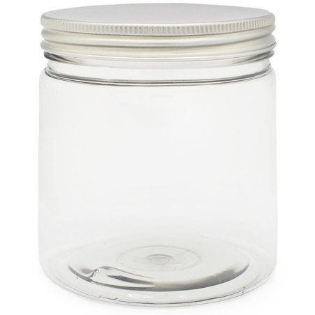 Pot transparent de 500 ml avec couvercle en aluminium, très pratique pour l’emballage des crèmes et toutes sortes de cosmétiques. Les contenants sont vendus vides et sont composés d’un contenant transparent circulaire qui est accompagné d’un couvercle en aluminium qui se ferme au fil. Ces contenants en plastique peuvent être réutilisés et recyclés.
