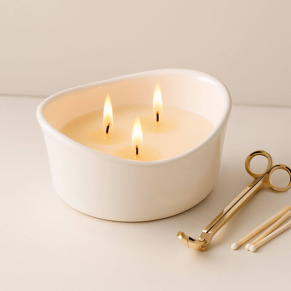 Ce récipient rond en céramique de 250 ml est un contenant décoratif et résistant, conçu pour le coulage final des cires utilisées dans la fabrication artisanale de bougies. Son fini lisse et sa structure rigide favorisent un remplissage homogène et un rendu visuel élégant, idéal pour des bougies parfumées personnalisées. Il est compatible avec pearl wax (cire nacrée), cires végétales et mélanges liposolubles adaptés aux bougies en contenant céramique.