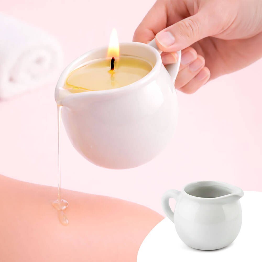 Ce récipient pour bougies de massage au format pichet en céramique a été conçu pour permettre la création de bougies de massage de façon pratique, confortable et avec un rendu esthétique et fonctionnel. Il est vendu vide et se distingue par son design résistant et la présence d’un bec verseur, qui facilite l’application contrôlée de la cire fondue pendant le massage.