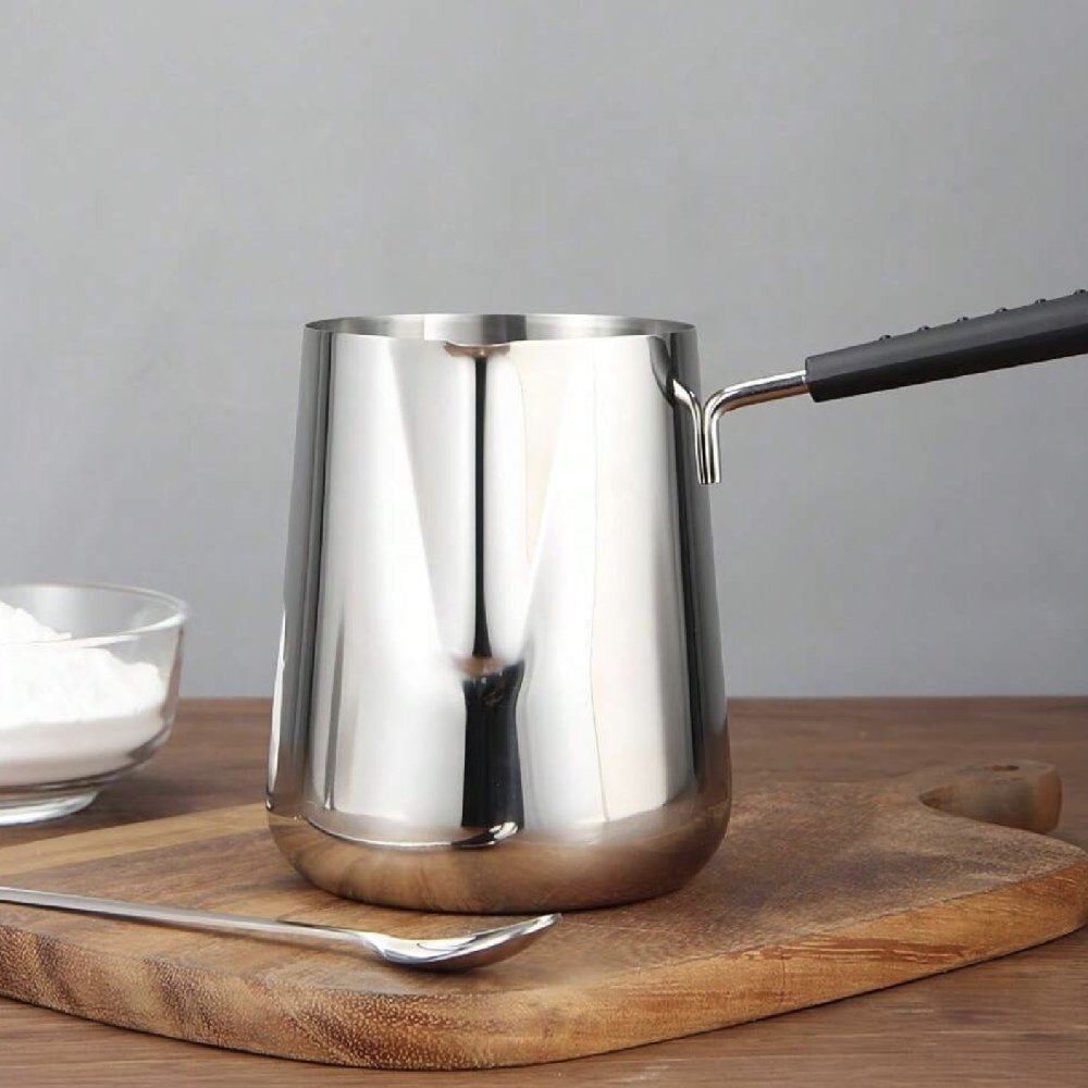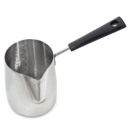 Pichet en métal avec poignée 350 ml pour faire fondre la cire, fabriqué en acier inoxydable et conçu pour fabriquer des bougies de manière pratique et sûre. Il dispose d’une poignée isolante pour une prise en main stable, d’un bec verseur qui évite les éclaboussures et de repères de mesure pour un travail précis. Résiste aux hautes températures et se nettoie facilement. Idéal pour faire fondre cire, paraffine et mélanges au bain-marie ou sur une plaque électrique. Non compatible avec micro-ondes ni lave-vaisselle. Après usage, laver à l’eau chaude savonneuse et bien sécher pour prolonger sa durée de vie.