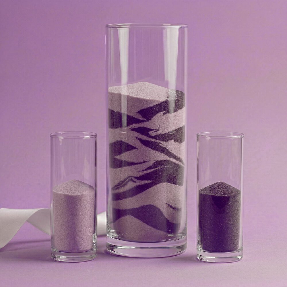 Este belo ritual que simboliza a união eterna do casal está cada vez mais presente nos casamentos. É uma tradição milenar em que cada um dos noivos deixa cair a areia em um recipiente de vidro ao mesmo tempo. A areia vai se misturar, criando um belo desenho, e será impossível separar. Para isso é necessário usar areia em duas cores, e a areia da Gran Velada é perfeita para isso.