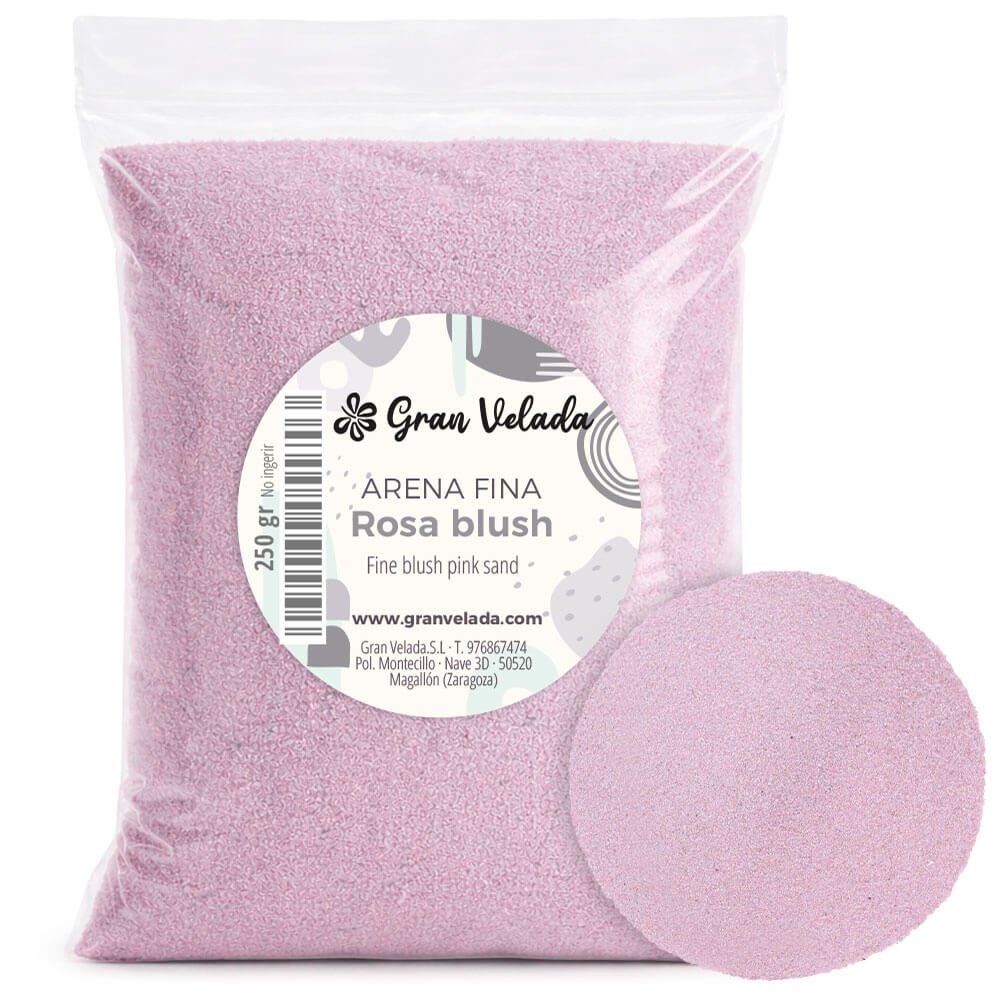 Areia de cor rosa blush de grão fino, ideal para artesanato, cerimónias, peças centrais, decoração... Na Gran Velada poderá comprar areia de diferentes cores. É um produto muito versátil que oferece muitas possibilidades ao trabalhar com ela. É perfeita para usar como base para luminárias, para criar peças centrais com velas, decorar garrafas e vasos de vidro ou até perfumar para preparar purificadores de ar originais. Também ficará incrível se planeja celebrar um casamento na praia. Deixe a sua imaginação voar com as areias de cores da Gran Velada!