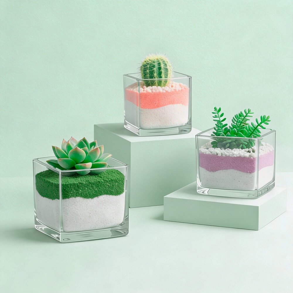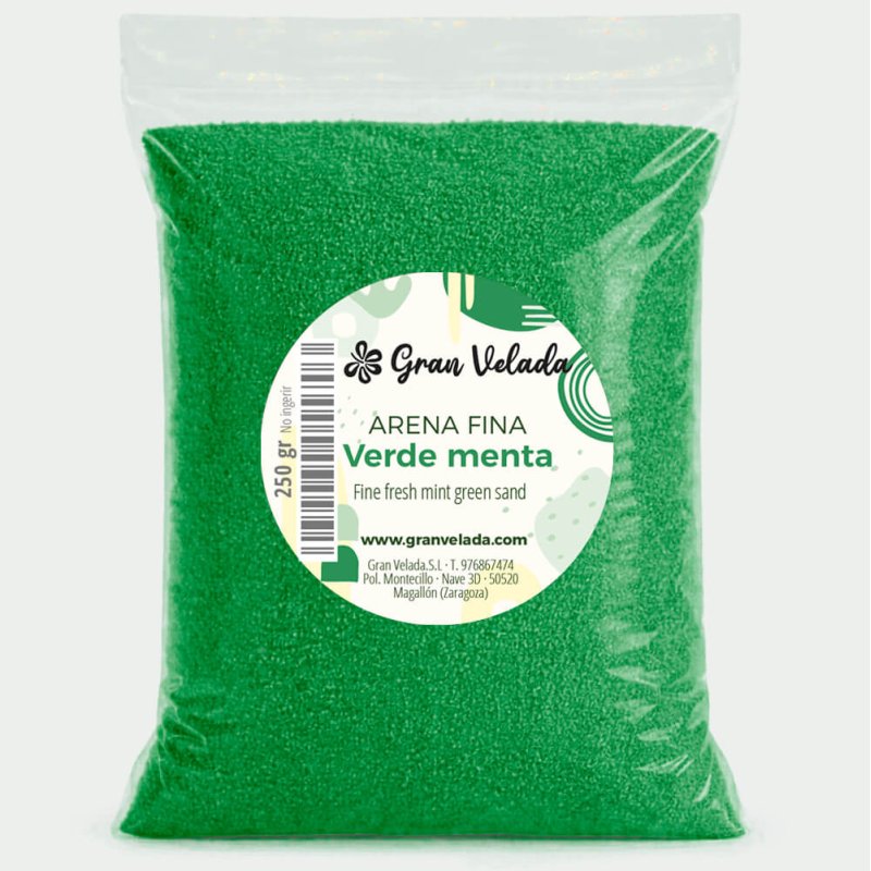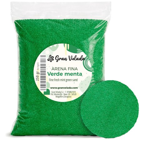 Areia de cor verde menta de grão fino, ideal para artesanato, cerimónias, peças centrais, decoração... Na Gran Velada poderá comprar areia de diferentes cores. É um produto muito versátil que oferece muitas possibilidades ao trabalhar com ela. É perfeita para usar como base para luminárias, para criar peças centrais com velas, decorar garrafas e vasos de vidro ou até perfumar para preparar purificadores de ar originais. Também ficará incrível se planeja celebrar um casamento na praia. Deixe a sua imaginação voar com as areias de cores da Gran Velada!