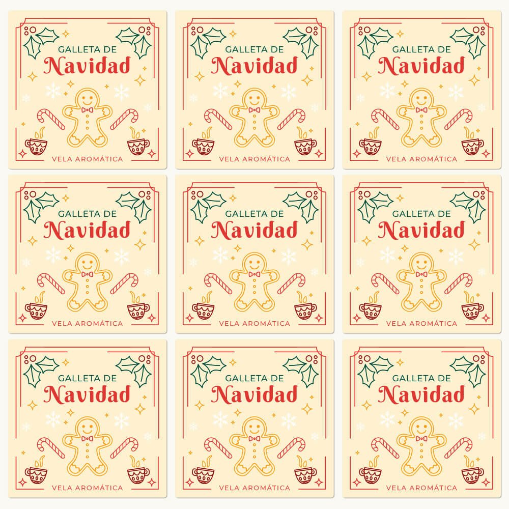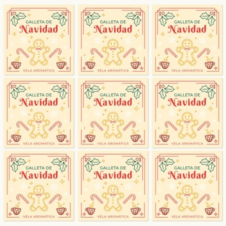 Autocolantes “Bolacha de Natal” para velas em copo, com ilustrações de bolachas de gengibre e doces festivos. Ideais para decorações de Natal, conjuntos de oferta e velas temáticas feitas em casa. Aplicam-se facilmente e proporcionam um acabamento divertido e acolhedor, perfeito para criar produtos personalizados nesta época festiva.