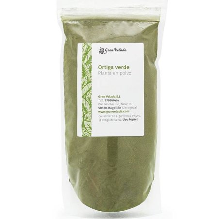 A urtiga verde poderá comprar na Gran Velada é formato em pó e se obtém depois de secar e moer a planta. Desta forma conserva todas as propriedades da urtiga verde. O seu uso está especialmente recomendado para cabelos oleosos.