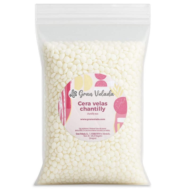 A cera para velas chantilly ou natas batidas (Cera para velas chantilly o natas batidas) é uma mistura vegetal de soja perfeita para criar velas decorativas com efeito de natas batidas. Tem um ponto de fusão entre 52 e 56 °C e trabalha-se quando atinge entre 45 e 50 °C. Nesse momento começa a espessar e pode ser batida com varas ou batedeira para obter uma textura arejada. Aplica-se de imediato com espátula ou manga de pasteleiro. Esta cera permite adicionar essências aromáticas e corantes compatíveis. Se arrefecer demasiado, pode voltar a aquecer-se ligeiramente (sem ultrapassar os 55 °C) e bater novamente. Ideal para fazer cupcakes de cera e outras velas chantilly com acabamentos únicos e profissionais.
