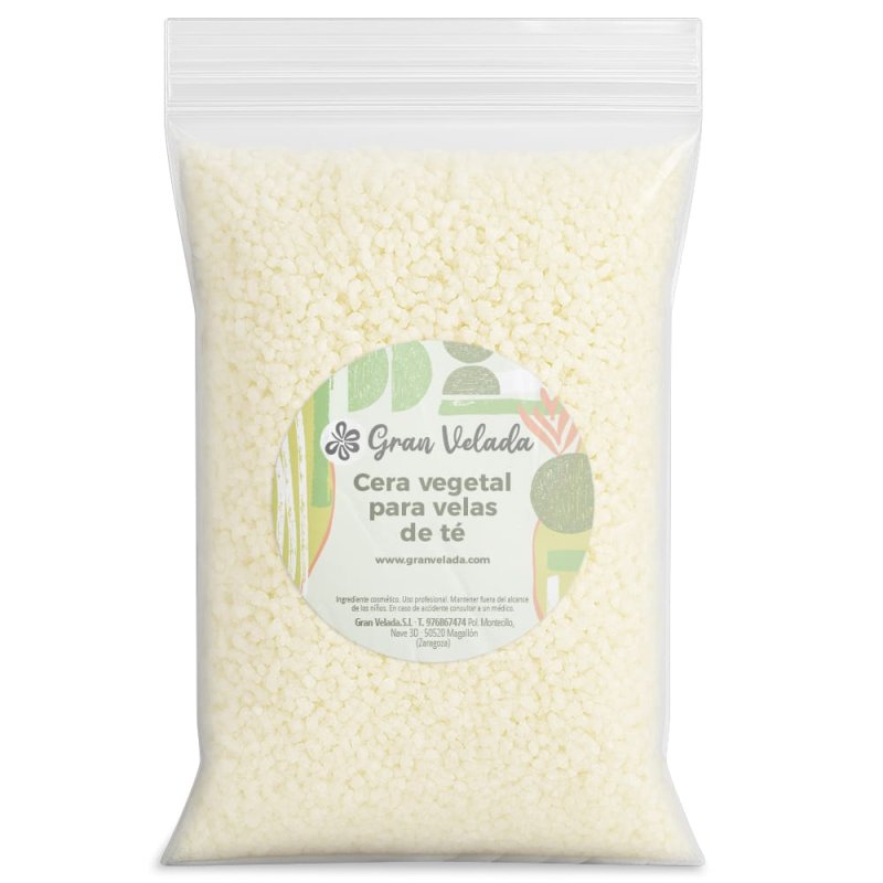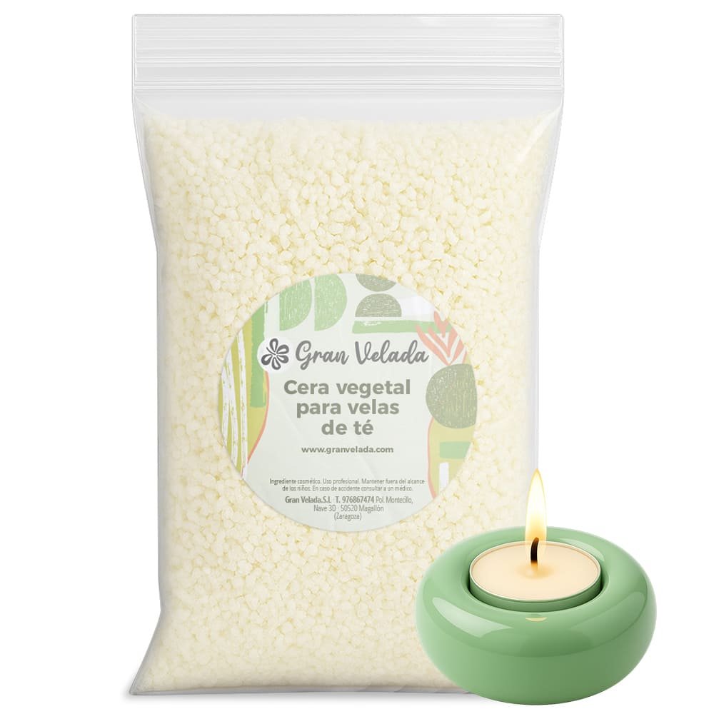 A cera vegetal para velas de chá é uma mistura de origem 100% vegetal, desenvolvida especificamente para a produção de velas tealight. Trata-se de uma cera de alta qualidade que se destaca pela sua dureza e resistência, permitindo obter velas firmes, duradouras e com melhor conservação da fragrância. Graças à sua composição, oferece uma combustão uniforme e estável, com boa fixação do aroma e um acabamento liso e homogéneo. Tem um ponto de fusão entre 54 e 58 °C e recomenda-se o vertimento entre 50 e 55 °C para melhores resultados. É uma cera versátil, fácil de trabalhar e compatível com essências aromáticas e corantes adequados para velas.