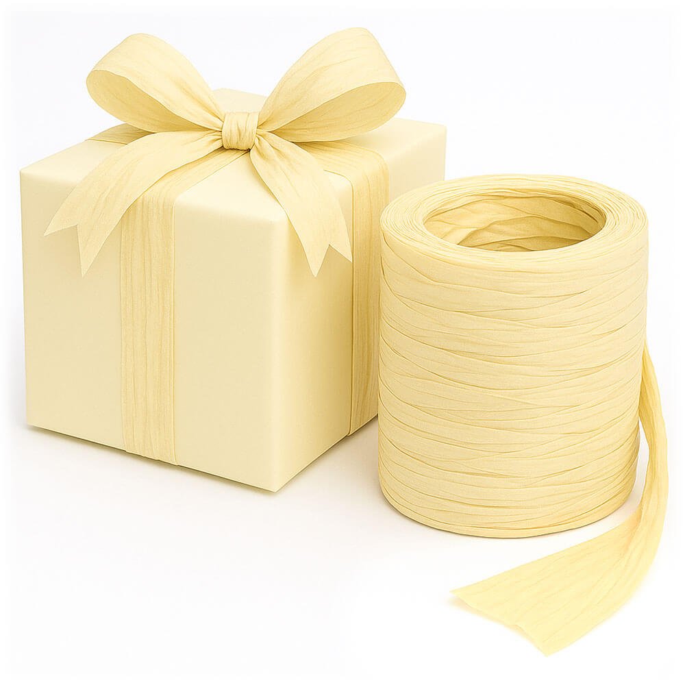 Fita decofiok baunilha, ideal para fazer laços com volume, embrulhar e decorar presentes, usar em floricultura, artesanato ... É um tipo de fita sintética com cerca de 10 cm de largura, muito moldável e manejável, resistente a líquidos e muito simples usar. Uma grande experiência não será necessária para obter um resultado perfeito. A verdade é que com a fita baunilha decofiok será capaz de dar um ponto de originalidade, volume e brilho a qualquer embrulho ou detalhe de casamento e convidados. De Gran Velada colocamos à sua disposição um rolo de fita decofiok de cor baunilha, com vários comprimentos. Escolha o tamanho desejado que melhor se adapte às suas necessidades e processe seu pedido.