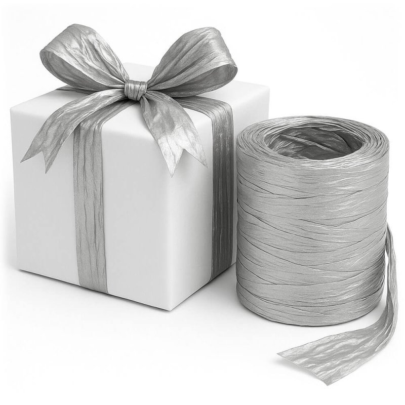 Fita decofiok prateada, ideal para fazer laços com volume, embrulhar e decorar presentes, usar em floricultura, artesanato ... É um tipo de fita sintética com cerca de 10 cm de largura, muito moldável e manejável, resistente a líquidos e muito simples usar. Uma grande experiência não será necessária para obter um resultado perfeito. A verdade é que com a fita prateada decofiok será capaz de dar um ponto de originalidade, volume e brilho a qualquer embrulho ou detalhe de casamento e convidados. De Gran Velada colocamos à sua disposição um rolo de fita decofiok de cor prateada, com vários comprimentos. Escolha o tamanho desejado que melhor se adapte às suas necessidades e processe seu pedido.