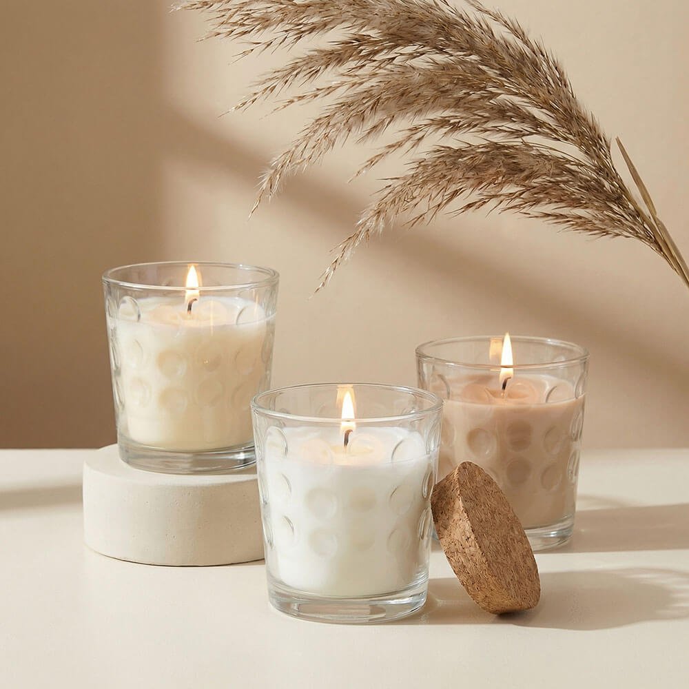 Copo de vidro Siena com tampa de cortiça para velas aromáticas com uma capacidade de 280 ml, perfeito para criar velas decorativas. Vendido vazio, fabricado em vidro transparente com formas circulares e resistente ao calor, ideal para suportar a cera quente. A tampa de cortiça de 85 x 77 x 15 mm é perfeita para preservar o aroma das velas. O que você precisa para fazer velas aromáticas em copo? Cera, essência aromática, corante e pavio encerado. Além disso, você pode decorar o copo com as etiquetas disponíveis em nossa loja online. Lembre-se de não encher o copo até o topo e deixar espaço para o pavio. Dica! Aqueça ligeiramente o copo antes de despejar a cera para evitar manchas e bolhas no vidro.