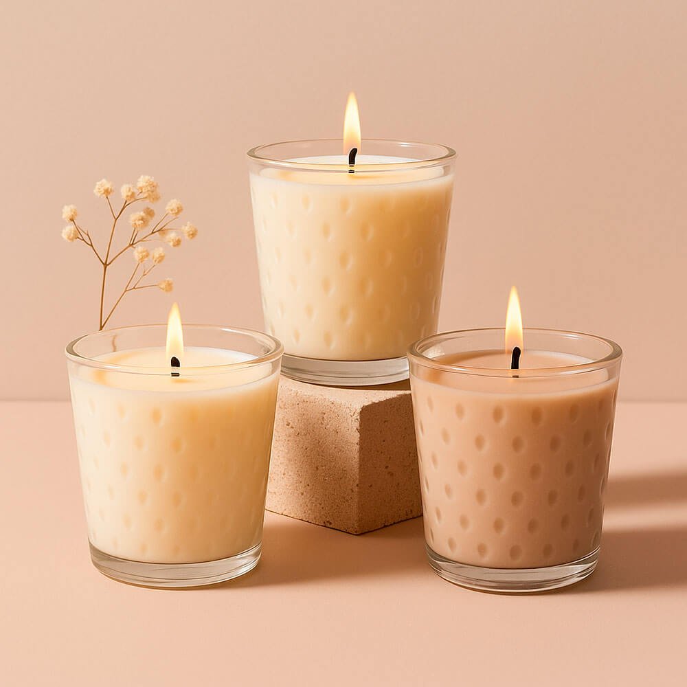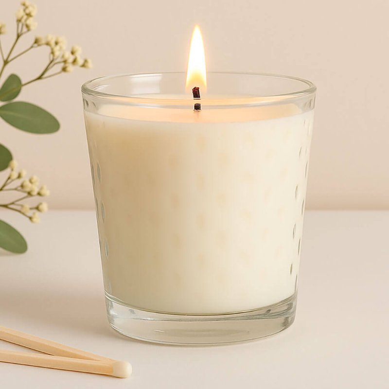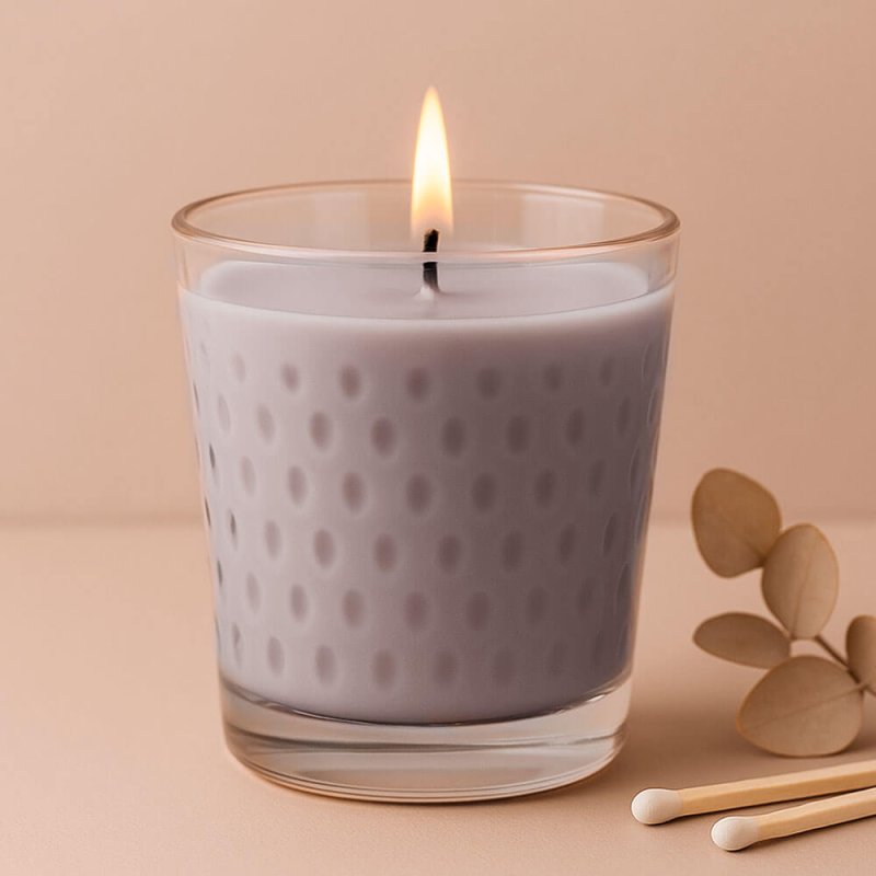 Copo de vidro Gotitas para velas aromáticas com uma capacidade de 260 ml, ideal para criar velas decorativas. Vendido vazio, fabricado em vidro transparente com relevo em forma de gotinhas e resistente ao calor, perfeito para suportar a cera quente. O que você precisa para fazer velas aromáticas em copo? Cera, essência aromática, corante e pavio encerado. Além disso, você pode decorar o copo com as etiquetas disponíveis em nossa loja online. Lembre-se de não encher o copo até o topo e deixar espaço para o pavio. Dica! Aqueça ligeiramente o copo antes de despejar a cera para evitar manchas e bolhas no vidro.
