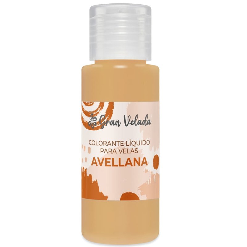 Corante líquido de cor de avelã, disponível em diferentes formatos. Os corantes líquidos para velas são cómodos e práticos, porque são muito fáceis de usar: somente terá que adicionar umas gotas na parafina fundida para conseguir que se tinja da cor. Ao ser concentrados, rendem muito e são muito rentáveis. Também, se dispersam facilmente e não deixam grânulos. Este colorante é uma mistura de branco, vermelho, azul e amarelo.