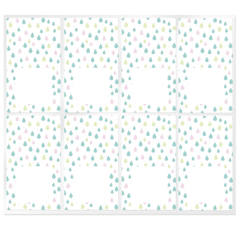 Blister de 8 adesivos com gotas coloridas e espaço em branco para escrever á mão. São retangulares, têm um fundo branco e são decorados com gotas coloridas em verde e rosa. Eles o ajudarão a obter a embalagem perfeita para suas criações DIY! Os adesivos que você pode comprar na Gran Velada se destacam pela resistência e qualidade. Eles aderem perfeitamente a uma variedade de superfícies (papelão, papel, plástico, vidro, alumínio ...) e são resistentes à água.