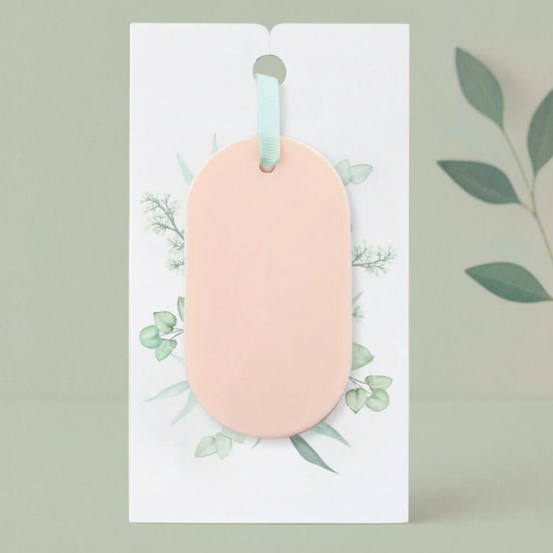 Este cartão adapta-se a múltiplas criações e celebrações. Use-o como suporte para tabletes aromáticas, ambientadores sólidos, cerâmica perfumada, mini sabonetes, velinhas ou mini perfumes. O orifício superior permite passar fita, laço ou cordão para prender a lembrança ou pendurá-la onde desejar. A sua estética versátil combina com estilos clássicos, rústicos ou naturais.