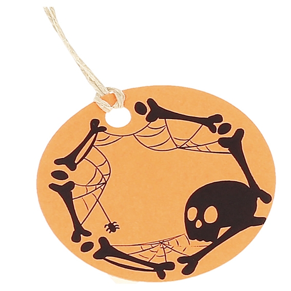 É um modelo redondo com uma decoração divertida impressa com ossos, caveira e teias de aranha. Um design mais sombrio! Na parte de trás, poderá escrever o que quiser. Eles serão o complemento perfeito para os seus detalhes de bricolage!