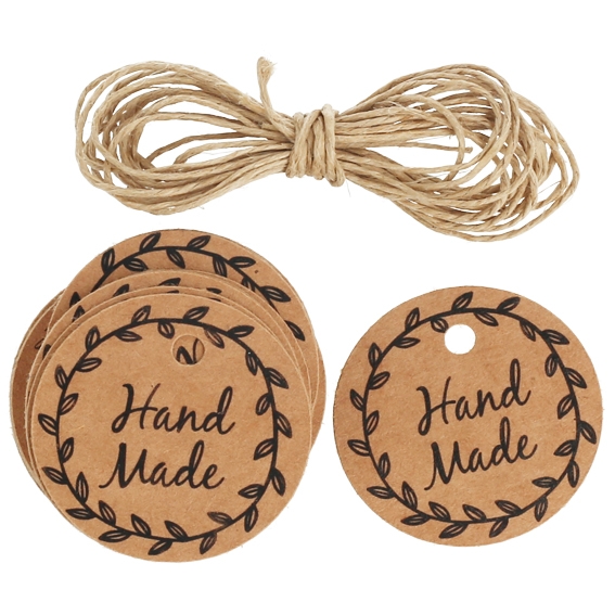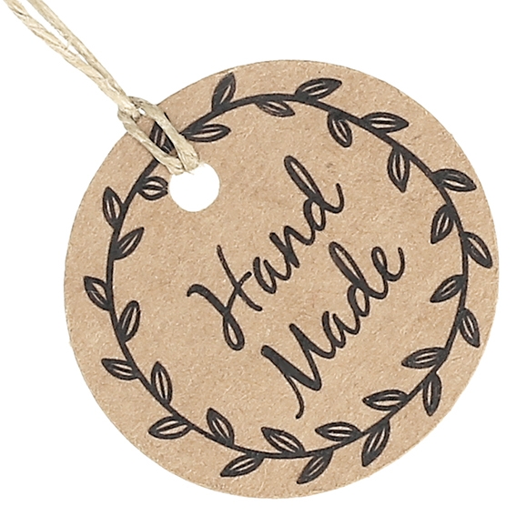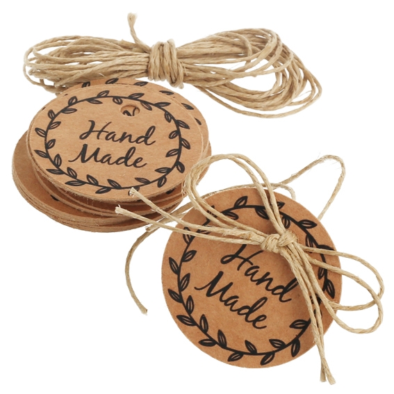 Packs de 10 etiquetas de papelão redondas com o texto hand made, de 4 cm. Eles são impressos em papelão e têm um design muito bonito, moderno e elegante. São ideais para personalizar os seus brindes, pois podem ser inseridos facilmente pela corda que acompanha as etiquetas. Estas são etiquetas de papelão vendidas em packs. São muito económicas e darão um toque personalizado aos seus presentes. Na Gran Velada encontrará uma grande variedade de etiquetas para pendurar de papelão. Escolha o seu favorito! A cor da corda pode variar a depender do stock.
