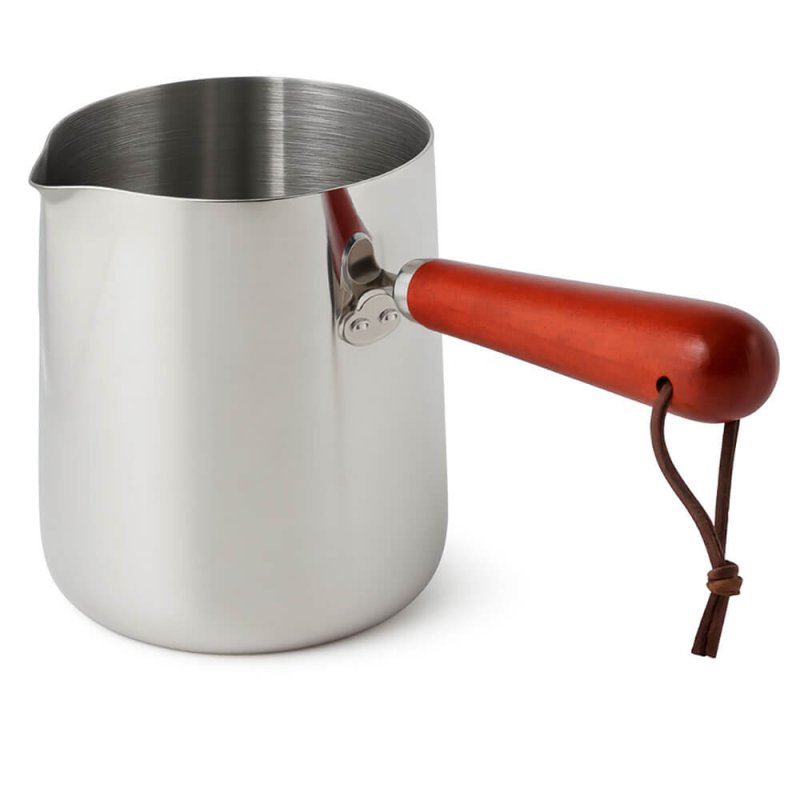 Jarro de metal com pega longa, em aço inoxidável 304, ideal para derreter cera e parafina nas tuas criações caseiras. Este jarro metálico conta com uma pega longa de plástico que facilita o manuseamento, um bico vertedor para despejar a cera derretida com conforto e sem derramar, e marcas de medição gravadas na lateral para maior precisão durante a utilização. Existem dois modelos disponíveis e será enviado um deles conforme o stock.