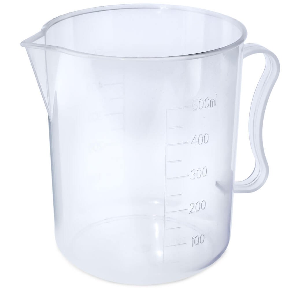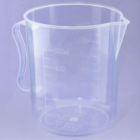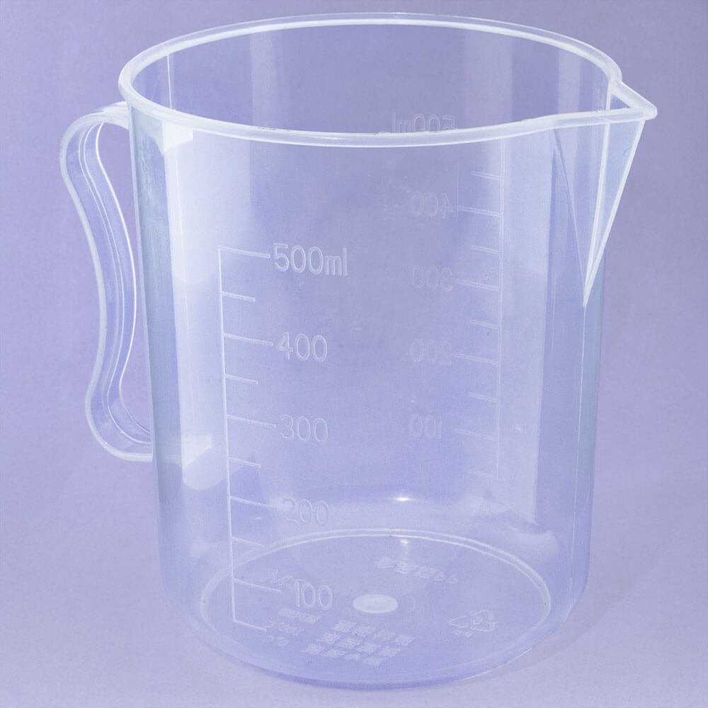 Jarro medidor de plástico com capacidade para 500 ml. Muito útil para as tuas preparações caseiras! É resistente, de boa qualidade e 100% reciclável. Este jarro não pode ir à máquina de lavar loiça. Tem as medidas gravadas, de 100 a 500 ml, em intervalos de 100 ml. Também indica até 500 g. Além disso, inclui um bico vertedor para facilitar a incorporação de líquidos medidos e uma pega para manusear com conforto. É muito prático de usar e versátil: podes fazer misturas e derreter pequenas quantidades no micro-ondas. Ideal para preparar cremes, sabonetes, máscaras… A cor e o modelo podem variar consoante a disponibilidade. Intervalo de temperatura: 0–100 °C.