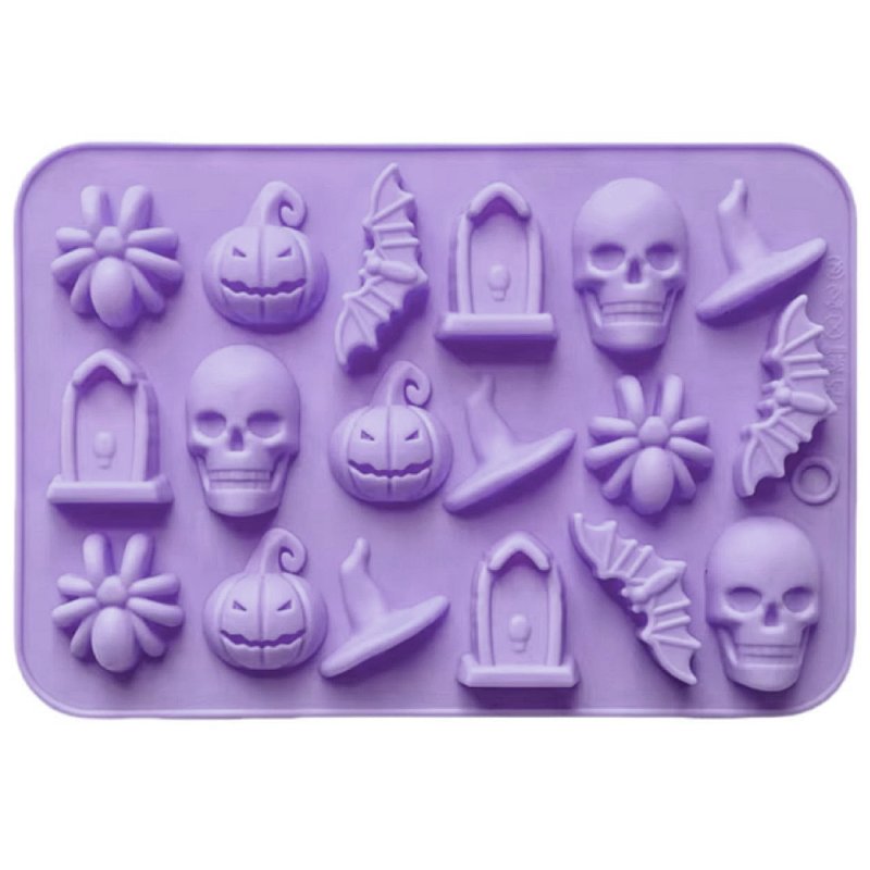 Molde encantado halloween 18 figuras aterrorizantes para fazer sabonetes e trabalhos manuais. É de silicone e tem 18 cavidades com formas de caveiras, abóboras, morcegos, aranhas e mais. É muito versátil e pode ser utilizado para diferentes tipos de criações. Além de fazer sabonetes, este molde também pode ser utilizado em outras manualidades.