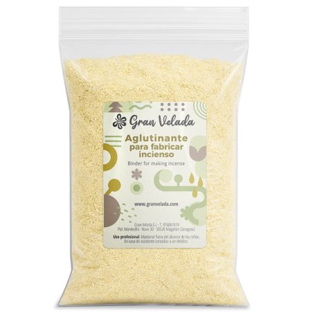 O aglutinante é um dos ingredientes do incenso. Trata-se de uma peça fundamental na hora de elaborar nosso próprio incenso caseiro. É uma espécie de "cola" natural que permite que todos os componentes da mistura se unam entre si para dar consistência à massa e poder moldá-la. Este aglutinante é um preparado exclusivo de Gran Velada que contém diferentes borrachas naturais. Desta forma buscamos facilitar o trabalho dos nossos clientes quando elaboram seus incensos artesanais. Vende-se em pó, tanto por atacado como por varejo.