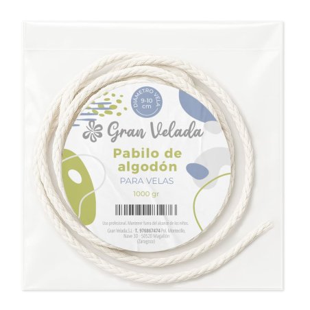 Pavio de algodão natural e núcleo vegetal no atacado para velas de 9-10 cm. Vendido por metro. Este pavio é fabricado com algodão 100% trançado e um núcleo de raion, uma fibra derivada de celulose vegetal. Graças à sua composição, oferece uma opção mais natural para quem procura materiais de origem vegetal na fabricação de velas. O núcleo de raion confere rigidez e estabilidade, permitindo que o pavio permaneça reto durante a combustão e favorecendo uma chama uniforme e constante.
