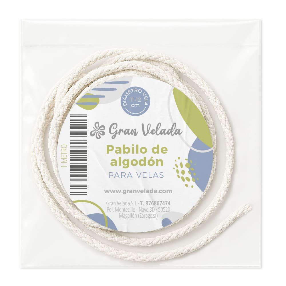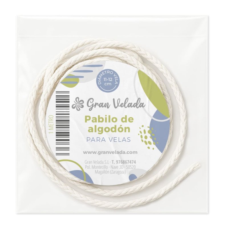 Pavio de algodão natural e núcleo vegetal para velas de 11-12 cm. Vendido por metro. Este pavio é fabricado com algodão 100% trançado e um núcleo de rayon, uma fibra derivada de celulose vegetal. Graças à sua composição, oferece uma opção mais natural para quem busca materiais de origem vegetal na fabricação de velas. O núcleo de rayon confere rigidez e estabilidade, permitindo que o pavio permaneça reto durante a combustão, favorecendo uma chama uniforme e constante.