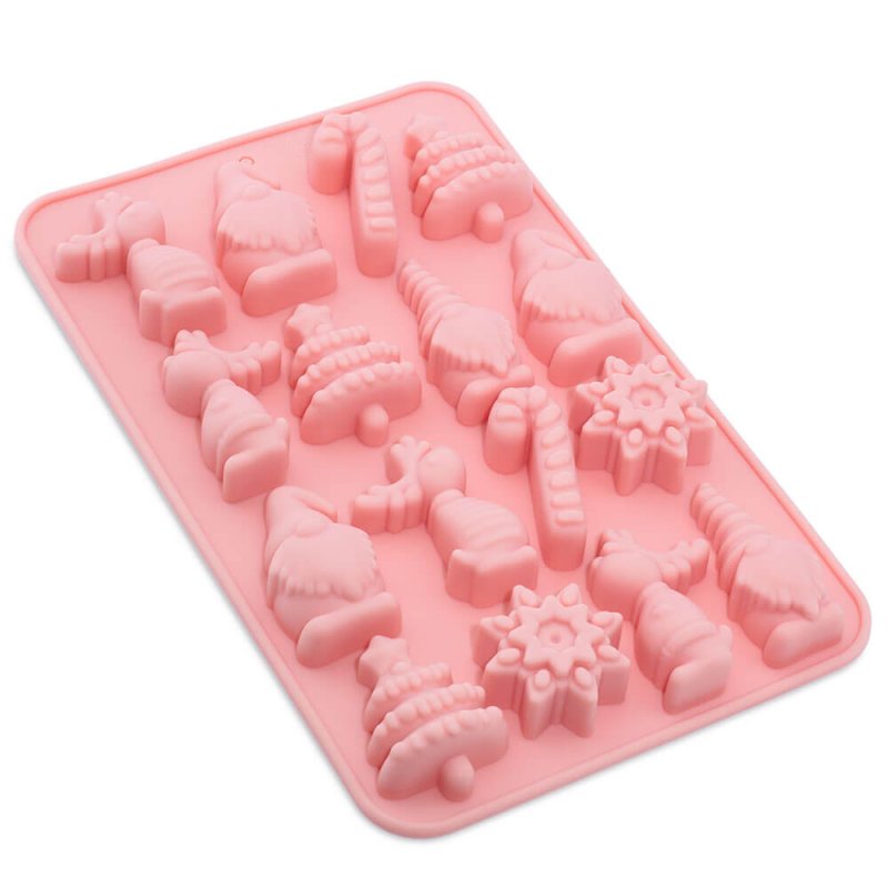 Molde de silicone com figuras natalícias, com 16 cavidades para fazer sabões, ceras aromáticas, wax melts ou ímanes de frigorífico. Inclui designs de gnomos, renas, árvores de Natal, bengalas doces e flocos de neve, perfeitos para as tuas manualidades de Natal. É um molde de silicone flexível, resistente e antiaderente, que não precisa de desmoldante e é fácil de limpar. Ideal para criar pequenos detalhes decorativos ou perfumados para oferecer ou perfumar a tua casa no Natal.