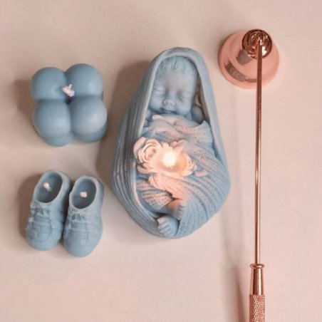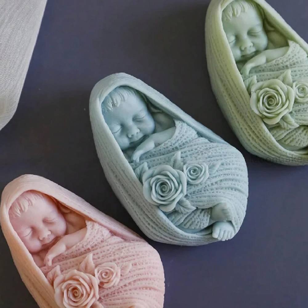 Molde bebé enrolado com manta, uma figura ternurenta de bebé aconchegado com detalhes de tranças e flores, perfeita para sabonetes de batizado, lembranças de nascimento ou detalhes infantis. É um molde de silicone de grande definição, flexível e antiaderente, pelo que desenforma facilmente e oferece resultados limpos. Utiliza-o com bases de sabonete de glicerina, adiciona essência aromática e corante e obtém peças lindas feitas em casa. Na Gran Velada encontras todos os materiais para completar o teu projeto, além de outros moldes de silicone com temática infantil.