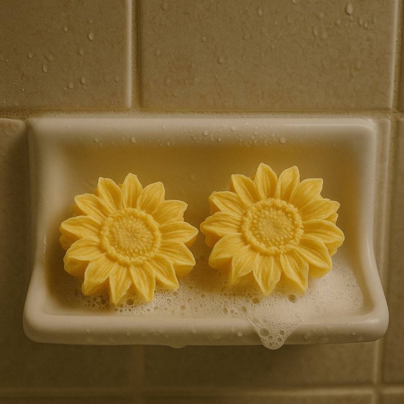 Molde sabonete girassol com 2 cavidades, ideal para fazer sabonetes de glicerina com um formato detalhado e realista de flor. Fabricado em silicone flexível e antiaderente, facilita o desenformar e mantém perfeitamente todos os relevos do desenho. Perfeito para criar sabonetes decorativos, lembranças de casamento ou presentes artesanais.