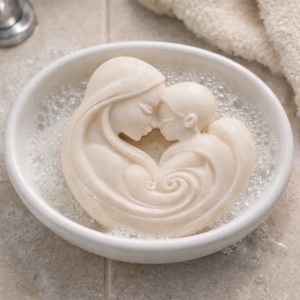 Molde de silicone com figura de mãe e bebé, concebido para elaborar sabonetes artesanais decorativos com um acabamento delicado e cheio de simbolismo. É uma opção ideal para criar detalhes personalizados para eventos como batizados, Dia da Mãe ou presentes especiais. Graças ao seu design, obterá peças elegantes que se destacam pela sua suavidade e harmonia.