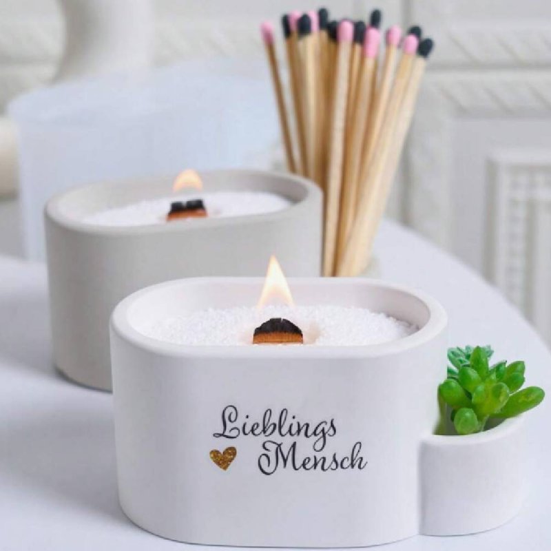 É um molde pensado para usar com resina à base de água, cimento para figuras ou gesso. Graças à sua forma e design, você obterá um recipiente com compartimento duplo: um para a vela e outro multifuncional. Pode ser preenchido com fósforos decorativos, uma mini planta ou qualquer outro detalhe a seu gosto.