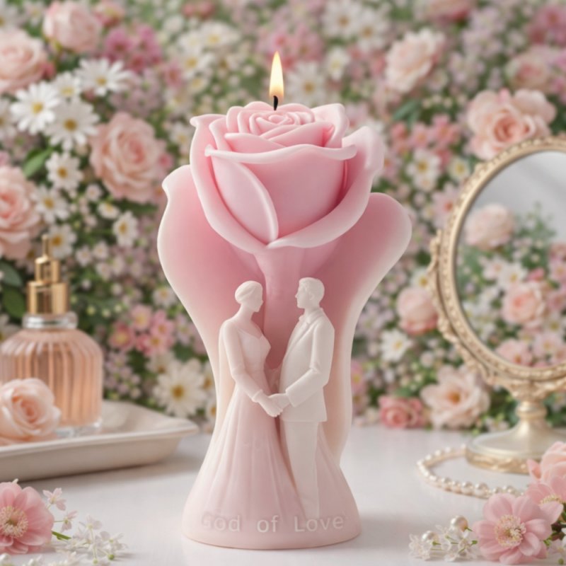 Molde de silicone para criar uma vela com uma cena de casal sob uma grande rosa. Um design delicado e muito ornamental, ideal para fazer velas decorativas para celebrações, presentes especiais ou para dar um toque romântico ao lar. Com este molde vais obter uma peça com relevos bem definidos e um resultado muito vistoso. Trata-se de um molde flexível, resistente e antiaderente, o que facilita o desenformar e ajuda a manter os detalhes nítidos. Para prolongar a sua vida útil, limpa-o e seca-o bem após cada utilização e guarda-o afastado da humidade e da luz solar direta.