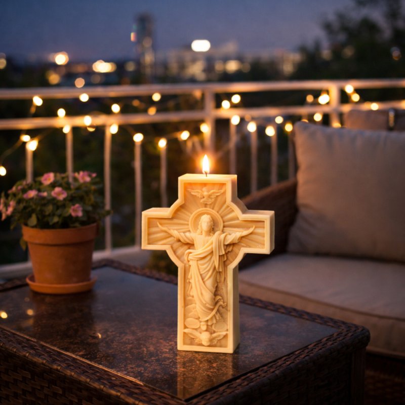 Com este molde poderás elaborar velas decorativas perfeitas para eventos especiais, celebrações religiosas ou ambientes com um toque simbólico. O seu design destaca-se pela combinação da forma de cruz com a figura central, proporcionando profundidade e detalhe a cada peça.