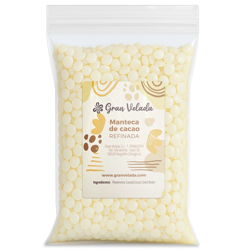 A manteiga de cacau refinada é obtida após a primeira prensagem a frio das sementes de cacau e o seu posterior refinamento. É rico em nutrientes e ácidos gordos que fazem desta manteiga um ingrediente cosmético ideal para acalmar e suavizar a pele áspera.
