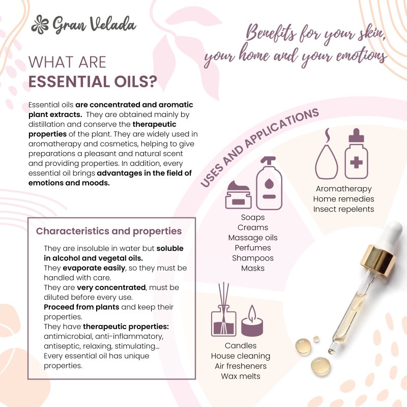 Óleo essencial de manjericão é puro e natural, com propriedades fungicidas, antioxidantes, revitalizantes e estimulantes. O óleo essencial de manjericão que poderá comprar na Gran Velada é obtido por destilação a vapor de folhas de manjericão. Tem um aroma fresco e picante, por isso é ideal para fazer perfumes. Também atuou como repelente de insetos. As propriedades fungicidas do óleo essencial de manjericão o tornam ideal para o tratamento da acne. Além disso, graças à sua ação revitalizante e estimulante, é utilizado para formular produtos capilares. O óleo essencial de manjericão em cosméticos é usado no fabrico de cremes, máscaras, champôs, sabonetes, óleos de massagem... Não deve ser aplicado diretamente sobre a pele.