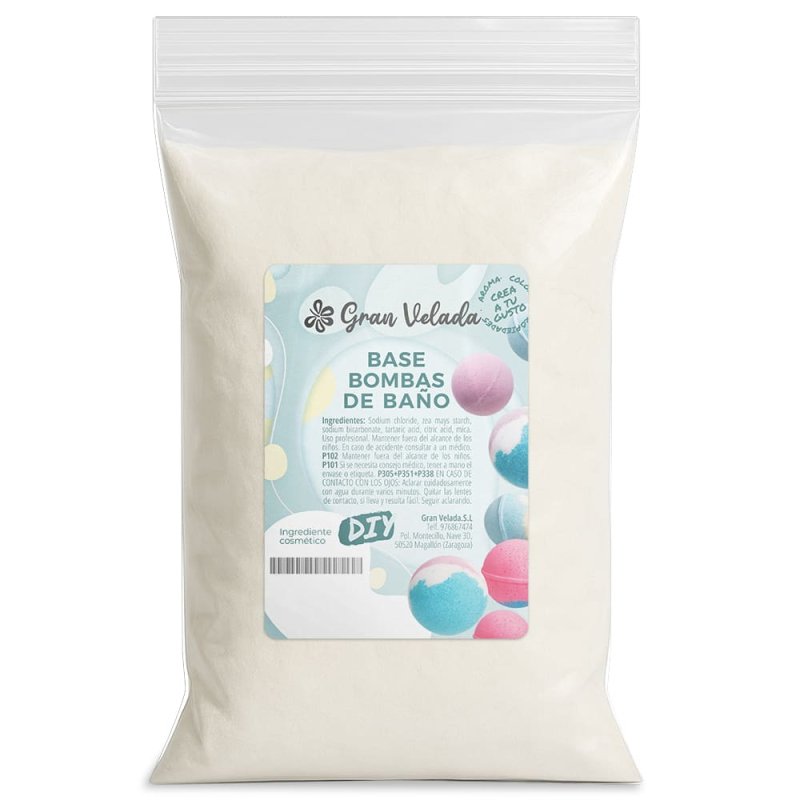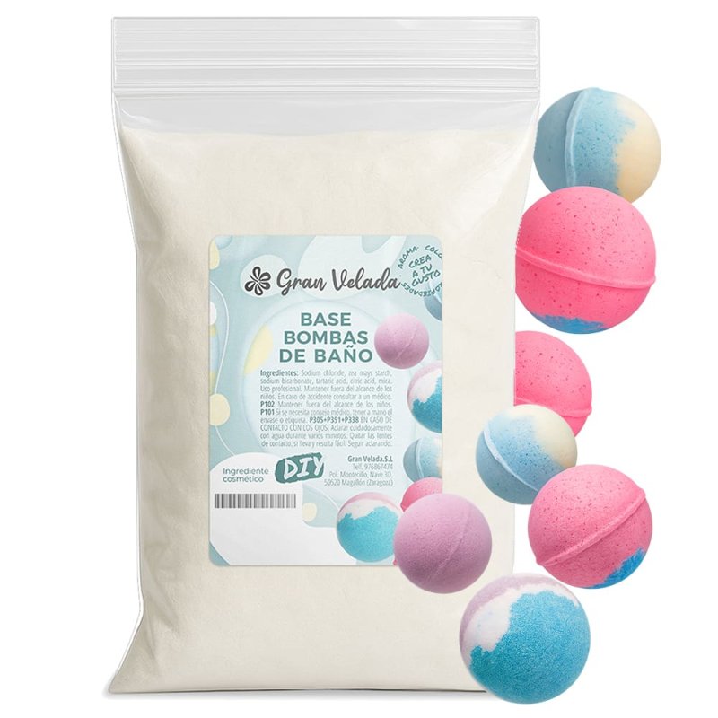 Base muito barata para fazer bombas de banho caseiras. Aproveite o formato económico de 23 quilos com grandes descontos! A base de bombas de banho DIY, é uma mistura de pó que a Gran Velada coloca à sua disposição para fazer bombas de banho caseiras com facilidade e economia. Esta base é o principal ingrediente da receita para bombas de banho caseiras. O que mais precisará? 120 g de hamamélis, 3 g de essência aromática, algumas gotas de coloração de bombas de banho a gosto (calculado sobre o peso da água) e um molde. Aqui mostramos passo a passo como fazer bombas de banho caseiras usando esta base como ingrediente principal. Verá como é fácil!