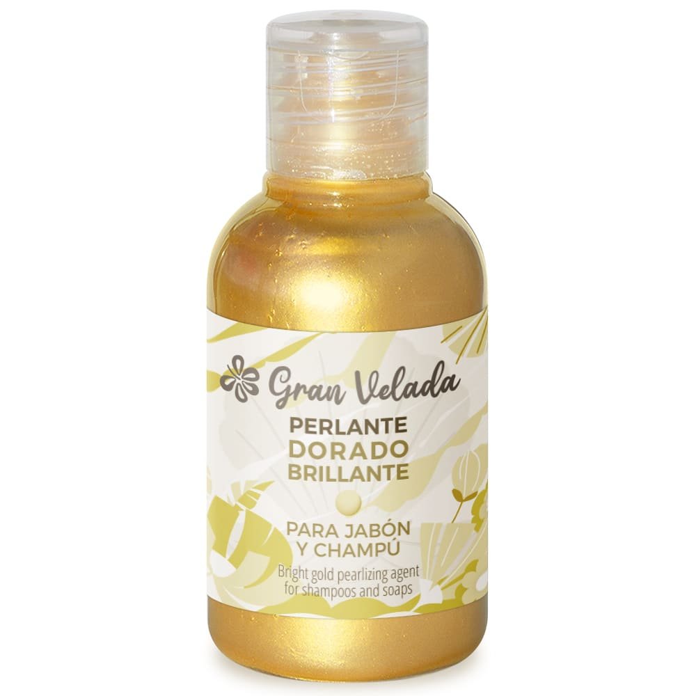 Na Gran Velada pode comprar líquido perlante dourado brilhante de alta qualidade para as suas elaborações de sabão, gel e champô. Na nossa loja online encontrará também bases de glicerina transparentes, corantes cosméticos, essências aromáticas e outros ingredientes para formular os seus próprios produtos de higiene personalizados.