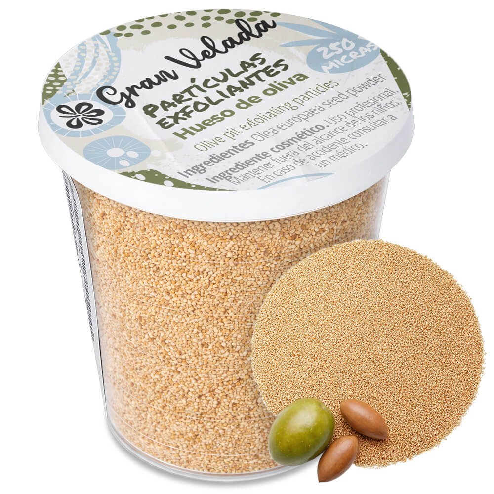 As partículas esfoliantes de caroço de oliva de 250 micras são um ingrediente natural muito valorizado na cosmética pela sua capacidade de realizar uma esfoliação suave e eficaz. Provêm do caroço da oliva finamente moído, originando um grânulo fino que limpa a pele em profundidade sem a irritar.
