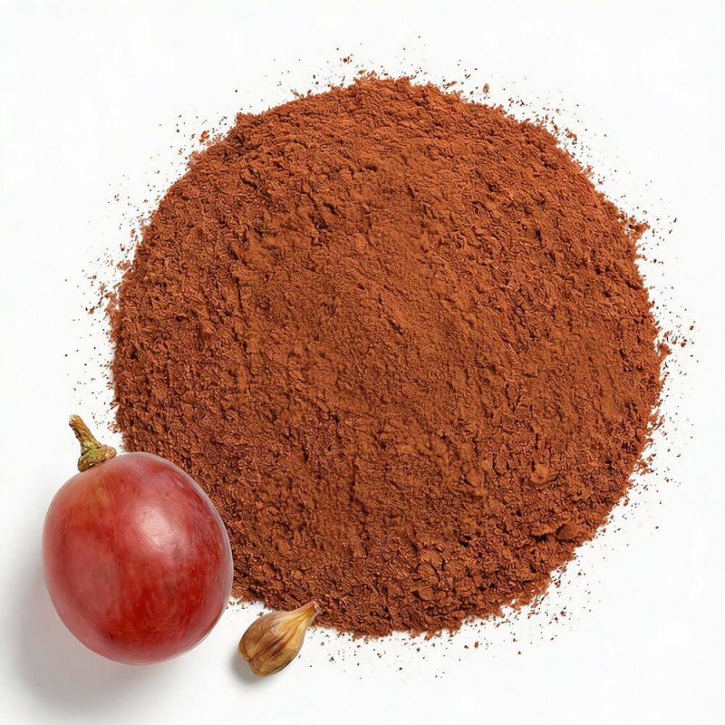 O grão de uva moído é obtido uma vez que o óleo tenha sido extraído por processo a frio. É então quando eles entram numa moagem especial para dar como resultado uma semente de uva moída de 300 microns. Este processo mantém todas as propriedades da semente de uva.