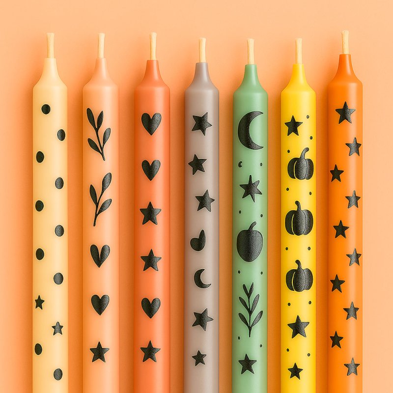 Nos blogs da Gran Velada encontrarás tutoriais com ideias para personalizar velas: padrões geométricos, letras, efeitos marmoreados e muito mais. Inspira-te e cria designs únicos!