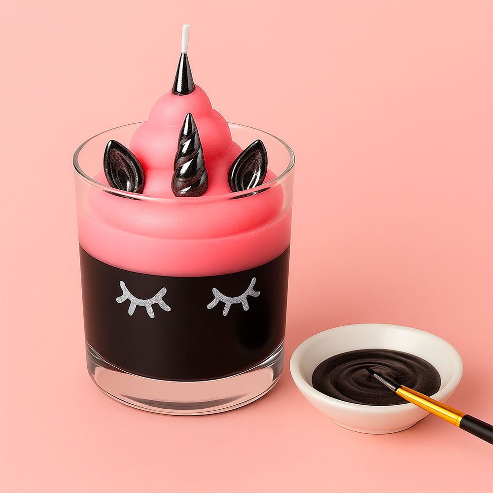 A tinta para velas que podes comprar na nossa loja online foi especialmente desenvolvida para pintar superfícies de cera. Apresenta-se em formato líquido e está disponível numa ampla paleta de cores, com tons metalizados, perolados, neutros e néon. Em particular, o preto metalizado proporciona um efeito sofisticado e de alto contraste, perfeito para detalhes, tipografias e acabamentos completos.