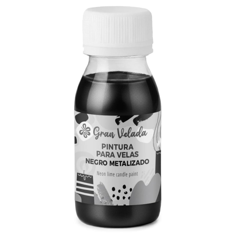 Tinta para velas preto metalizado, ideal para pintar superfícies de cera. Com ela poderás decorar as velas e os fanales que fizeres em casa. A tinta para velas que podes comprar na Gran Velada tem formato líquido e é muito fácil de usar. Só tens de agitá-la e aplicá-la com um pincel ou uma esponja sobre a superfície que pretendes pintar. Seca rapidamente. Também podes usar um stencil para conseguir criações totalmente personalizadas. O seu acabamento metalizado confere um efeito elegante e luminoso às tuas velas. Obtém-na facilmente através da nossa loja online!