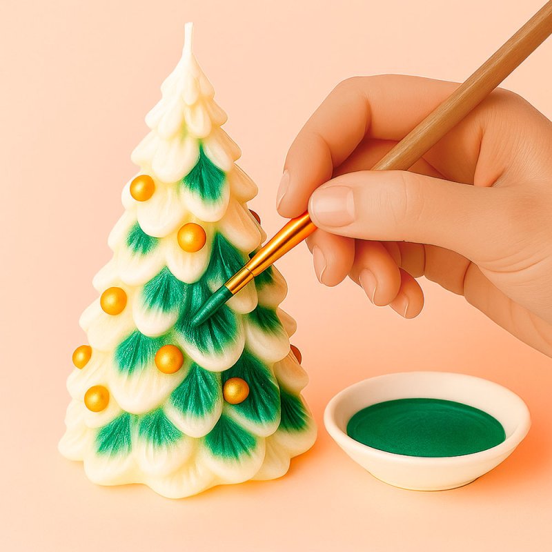 De seguida mostramos-te passo a passo como usar a tinta para velas. É de secagem rápida e adere facilmente a qualquer superfície de cera. Podes aplicá-la com pincel para detalhes precisos, com esponja tipo stencil para efeitos criativos ou com a técnica de imersão para cobrir totalmente a vela.