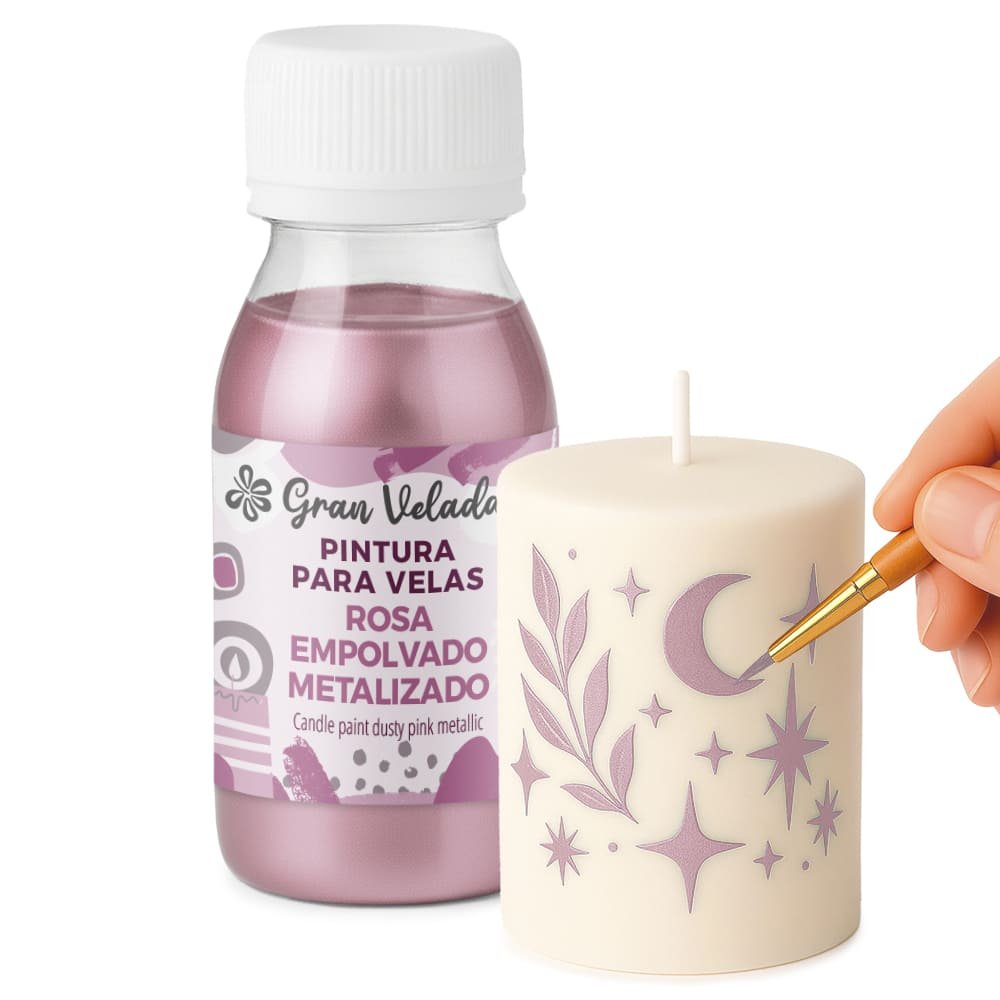 Tinta para velasrosa pó metalizado, ideal para pintar superfícies de cera. Com ela poderás decorar as velas e os fanales que fizeres em casa. A tinta para velas que podes comprar na Gran Velada tem formato líquido e é muito fácil de usar. Basta agitá-la e aplicá-la com um pincel ou uma esponja sobre a superfície que pretendes pintar. Seca rapidamente. Também podes utilizar um stencil para obter criações totalmente personalizadas. O seu acabamento metalizado dá um toque elegante e luminoso às tuas velas. Obtém-na facilmente através da nossa loja online!