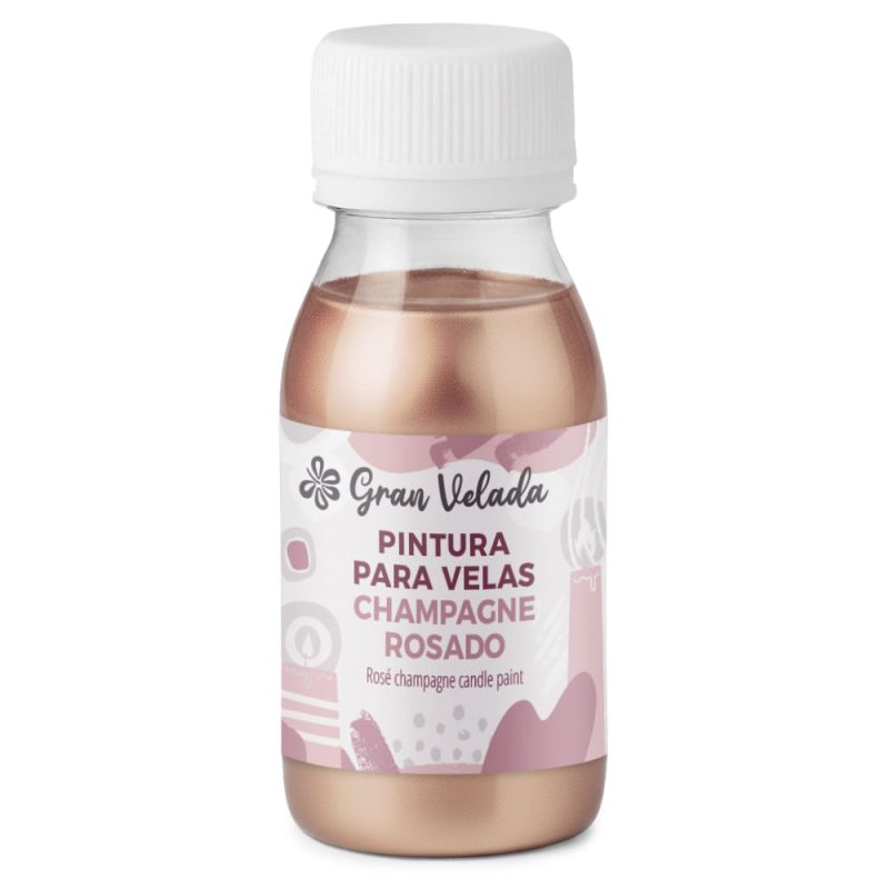 Tinta para velas champanhe rosado, ideal para pintar superfícies de cera. Com ela poderás decorar as velas e os fanales que fizeres em casa. A tinta para velas que podes comprar na Gran Velada tem formato líquido e é muito fácil de usar. Basta agitá-la e aplicá-la com um pincel ou uma esponja sobre a superfície que pretendes pintar. Seca rapidamente. Também podes utilizar um stencil para obter criações totalmente personalizadas. O seu acabamento metalizado dá um toque elegante e luminoso às tuas velas. Obtém-na facilmente através da nossa loja online!